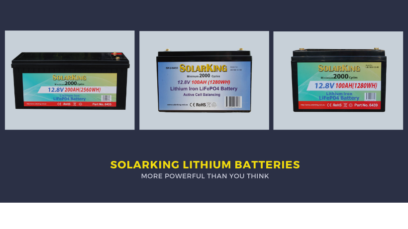 Solarking lithium batteries range from 7ah to 240ah and are available on 12v and 24v.